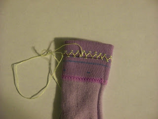 4. The next stitch is an under cable. Notice the thread is "under". Stitch this over, under, over, under combination all the way across. I happened to end on a over cable.